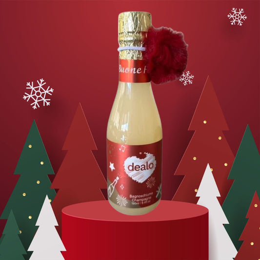 Dealo Bagnoschiuma Champagne 190 ml Confezione Bottiglia Idealo Regalo Natalizia Rendi il momento del bagno ancora più speciale con il Bagnoschiuma Dealo Champagne, presentato in una raffinata confezione a forma...