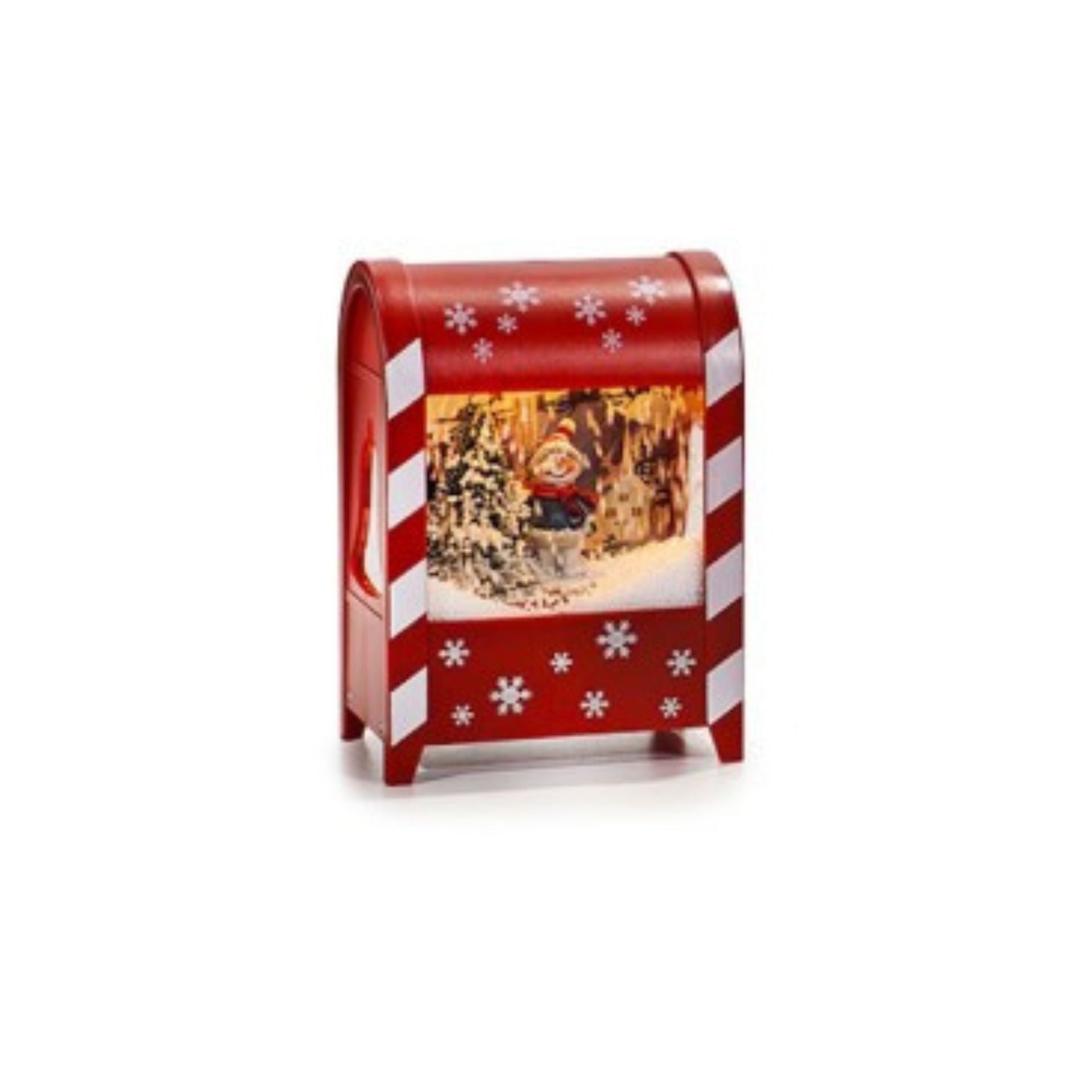 Porta la magia del Natale nella tua casa con questa incantevole lanterna musicale a forma di cassetta postale, decorata con fiocchi di neve e impreziosita da un dolce Babbo Natale in movimento.